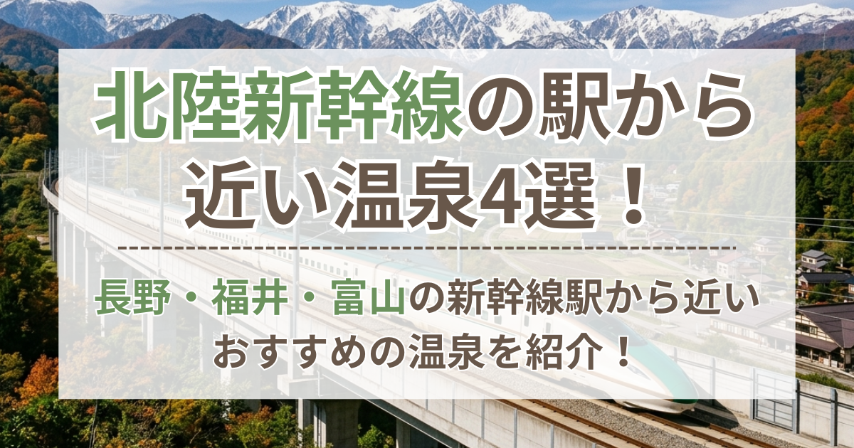 北陸新幹線の停車駅付近には、近くて行きやすい温泉がいくつかありますよ。