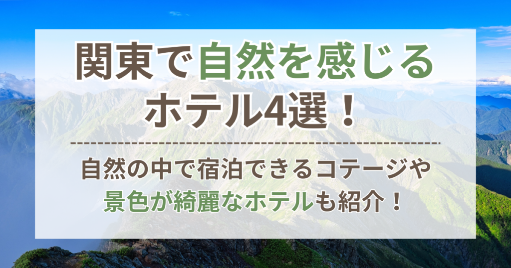 自然に触れて、心も体も癒されたいな。 関東で自然を感じられるホテルはあるのかな... -